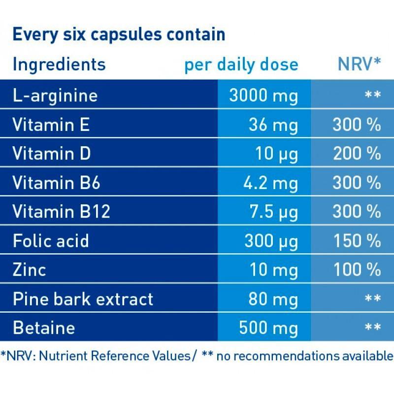 أميتامين® إم فورتي مكمل غذائي لأغراض خاصة. يُنصح به لدعم الإدارة الغذائية لضعف وظائف الأوعية الدموية والخلايا. تحتوي تركيبة إم فورتي على إل-أرجينين من الدرجة الصيدلانية، ومستخلص لحاء الصنوبر، وسبعة عناصر غذائية دقيقة أخرى. تدعم هذه العناصر صحة الشرايين من خلال المساهمة في استقلاب الهوموسيستين (فيتامين ب6، ب12، حمض الفوليك، والبيوتين) المُضر بالأوعية الدموية، وتعزيز مستويات الطاقة الصحية (الزنك). أميتامين® هو المنتج الوحيد الذي يحتوي على تركيبة فورتي: تركيبتنا الفريدة من إل-أرجينين بجرعات عالية من الدرجة الصيدلانية، ممزوجة بمستخرج لحاء الصنوبر وسبعة عناصر غذائية دقيقة إضافية، مصممة خصيصًا لتلبية احتياجاتك الغذائية. هذه التركيبة الناجحة والمُثبتة حصرية لأميتامين® إم فورتي، وهي مصممة للاستخدام المستمر. خضعت تركيبتنا لاختبارات دقيقة للغاية لتدفق الدم الوعائي بفضل جرعتها الخاصة من إل-أرجينين من الدرجة الصيدلانية. "صنع في ألمانيا" تحت إشراف صارم من الجهات الرقابية الدوائية. جميع المنتجات مُطورة ومُصنعة ومعتمدة من قبل شركة ألمانية. جميع المكونات عالية الجودة من الدرجة الصيدلانية. أميتامين® إم فورت خالٍ من أي مواد مالئة أو مُحليات أو ألوان صناعية. سهل الهضم، ويُنصح بتناوله باستمرار للاستفادة الكاملة من فوائده. تحتوي العلبة الواحدة على 180 كبسولة في عبوات محكمة الغلق لضمان أقصى درجات النظافة.