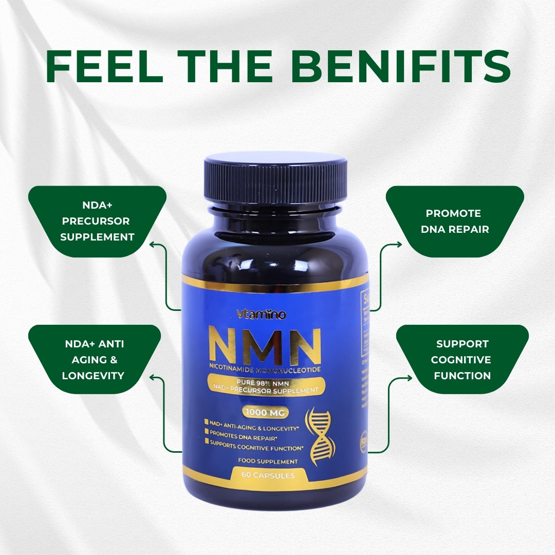 دعم NAD+ للصحة: يعزز مستويات NAD+ للمساعدة في مكافحة آثار الشيخوخة.
