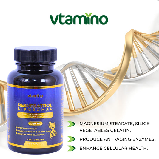 vtamino Pure 99% Liposome Resveratrol with Vitamin C & Polyphenol Complex - Boosts NAD+ Levels for Reverse Aging & Longevity (1 Month Supply)