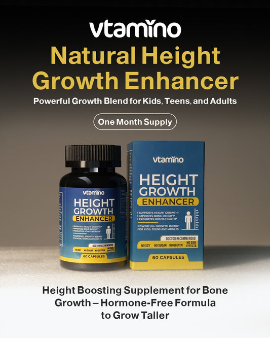 vtamino Natural Height Growth Enhancer - Height Boosting Supplement for Bone Growth - Hormone-Free Formula to Grow Taller (1 Month Supply)
